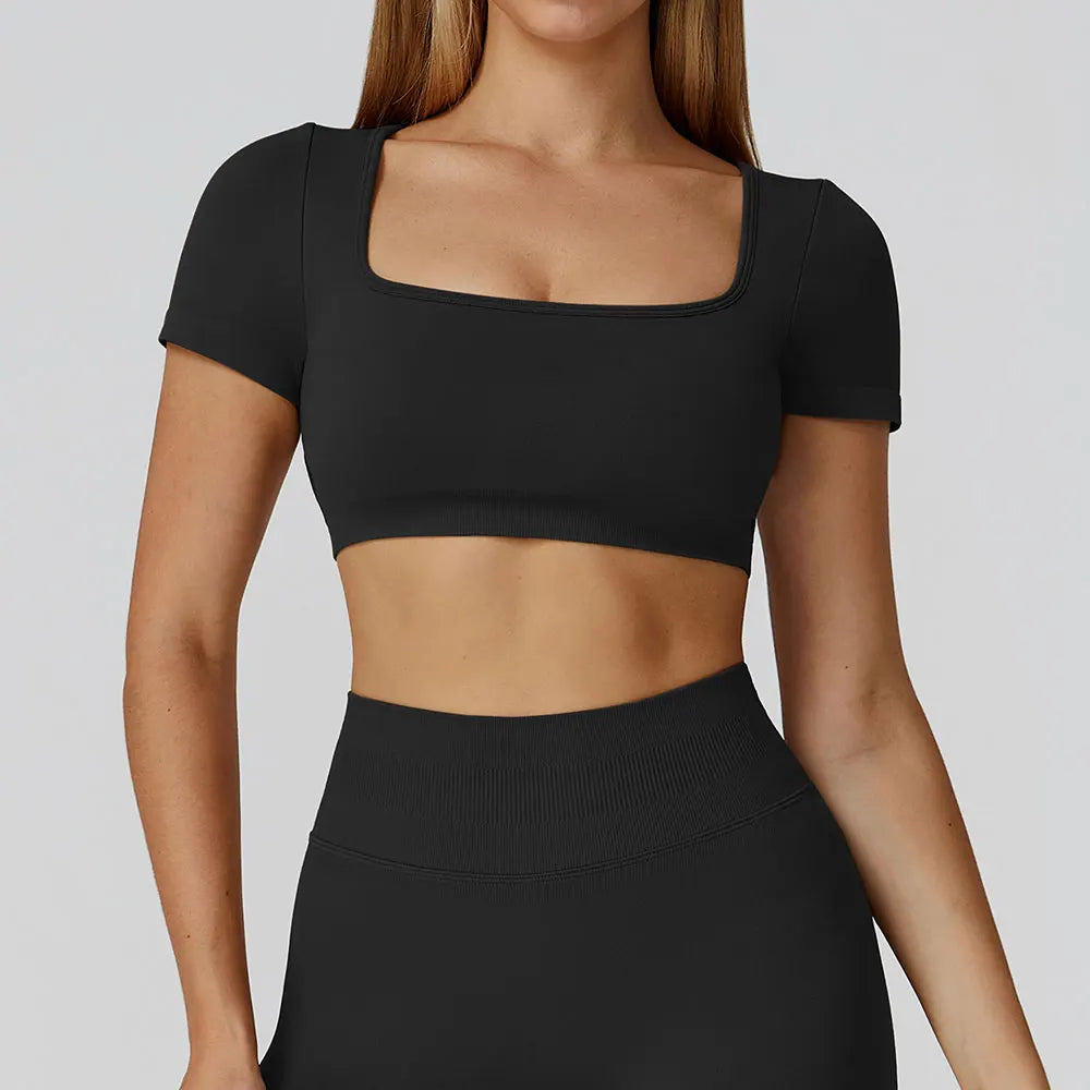 Made with a 4-way stretch fabric, this top adapts effortlessly to your body’s movements, whether you're stretching, lifting, or flowing through poses. The short sleeves (4–16 inches) provide a balanced combination of coverage and breathability, giving you the support you need without restricting mobility.